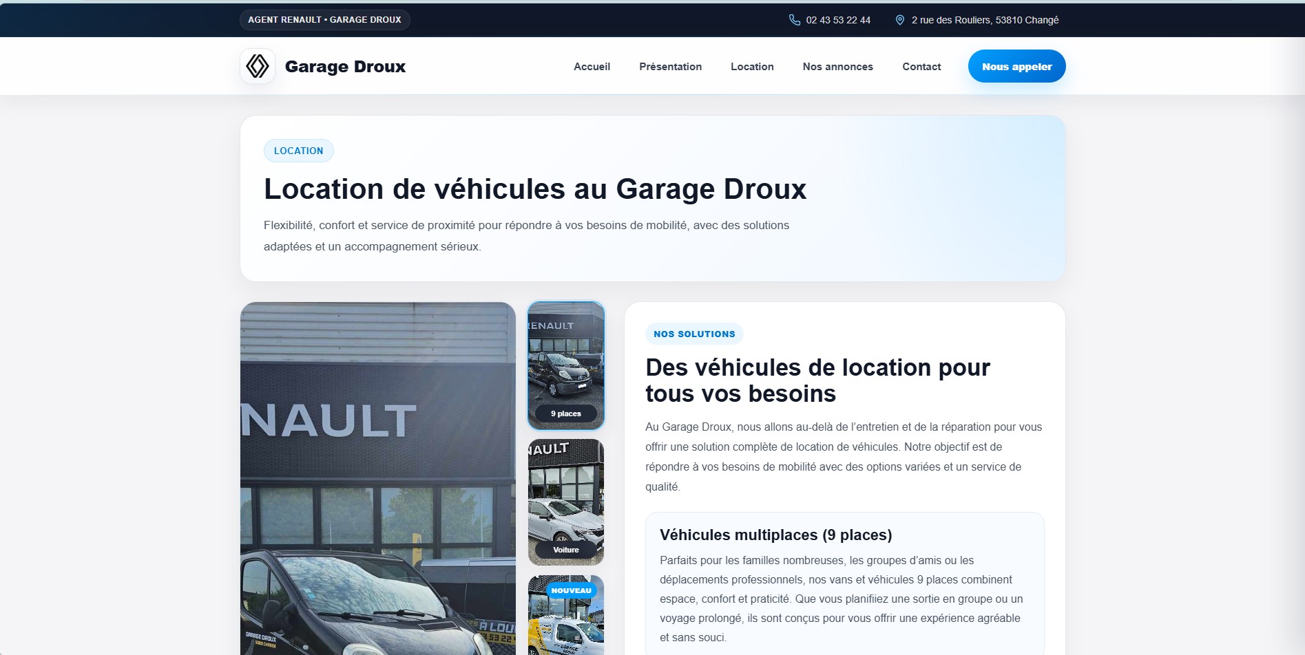 Développement du site Garage Droux en Next.js avec mise en place de fonctionnalités sur mesure et d’une application Android connectée permettant de publier les annonces du garage directement depuis mobile.